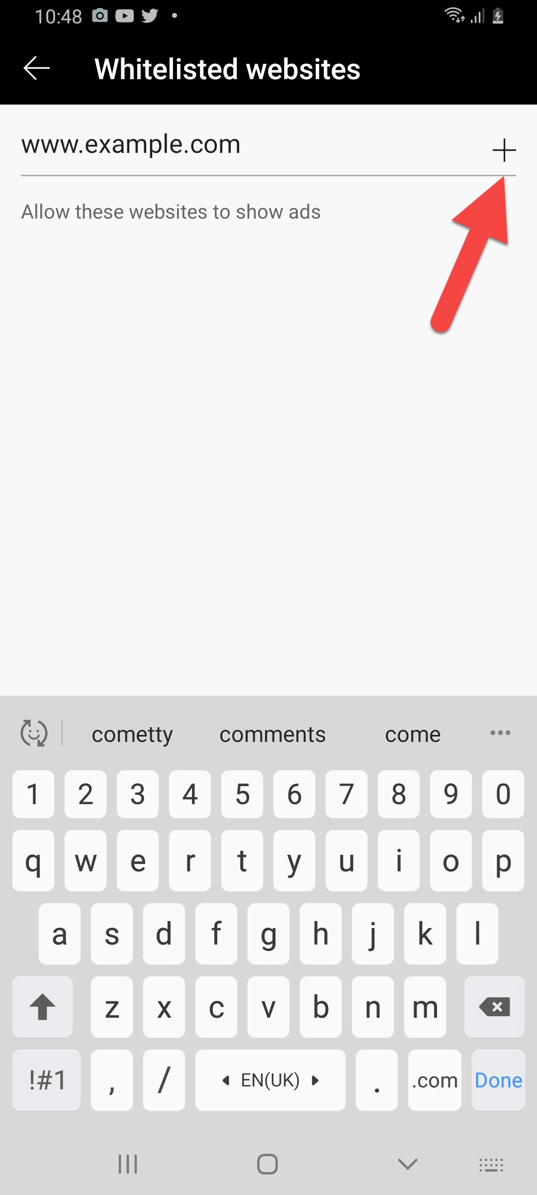 Tap on the Whitelisted Websites Step 7. Next, type the website that you want to see ads on. When you type the website’s name then click on the + icon.