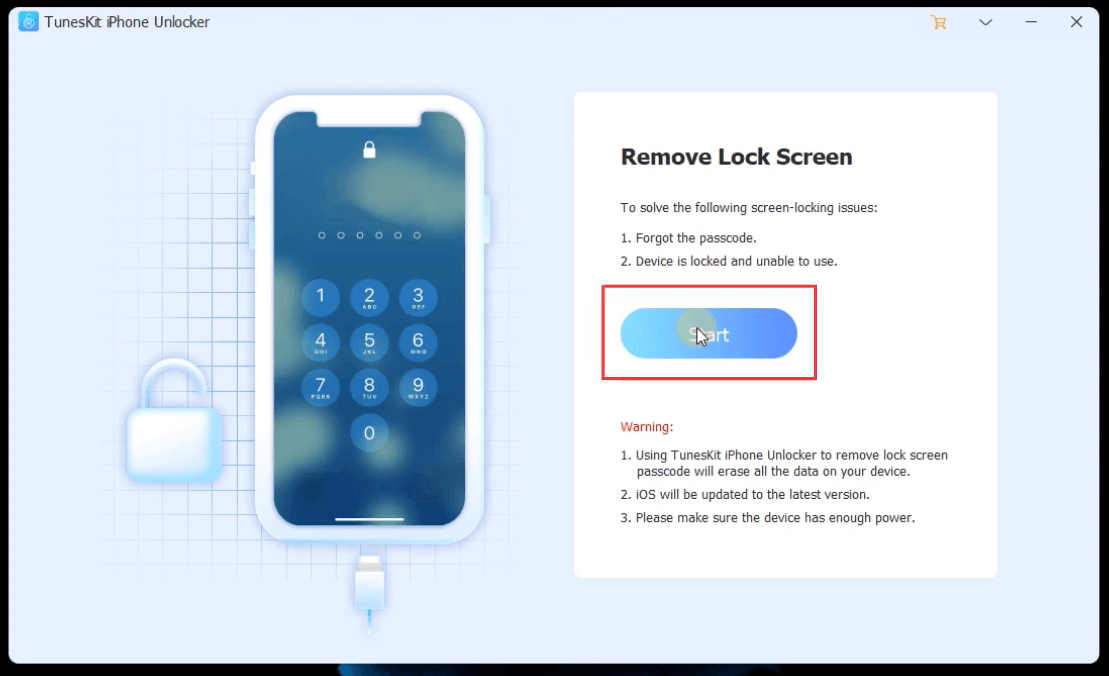 Now it is time to follow the steps to Bypass iPhone Passcode using TunesKit iPhone Unlocker.