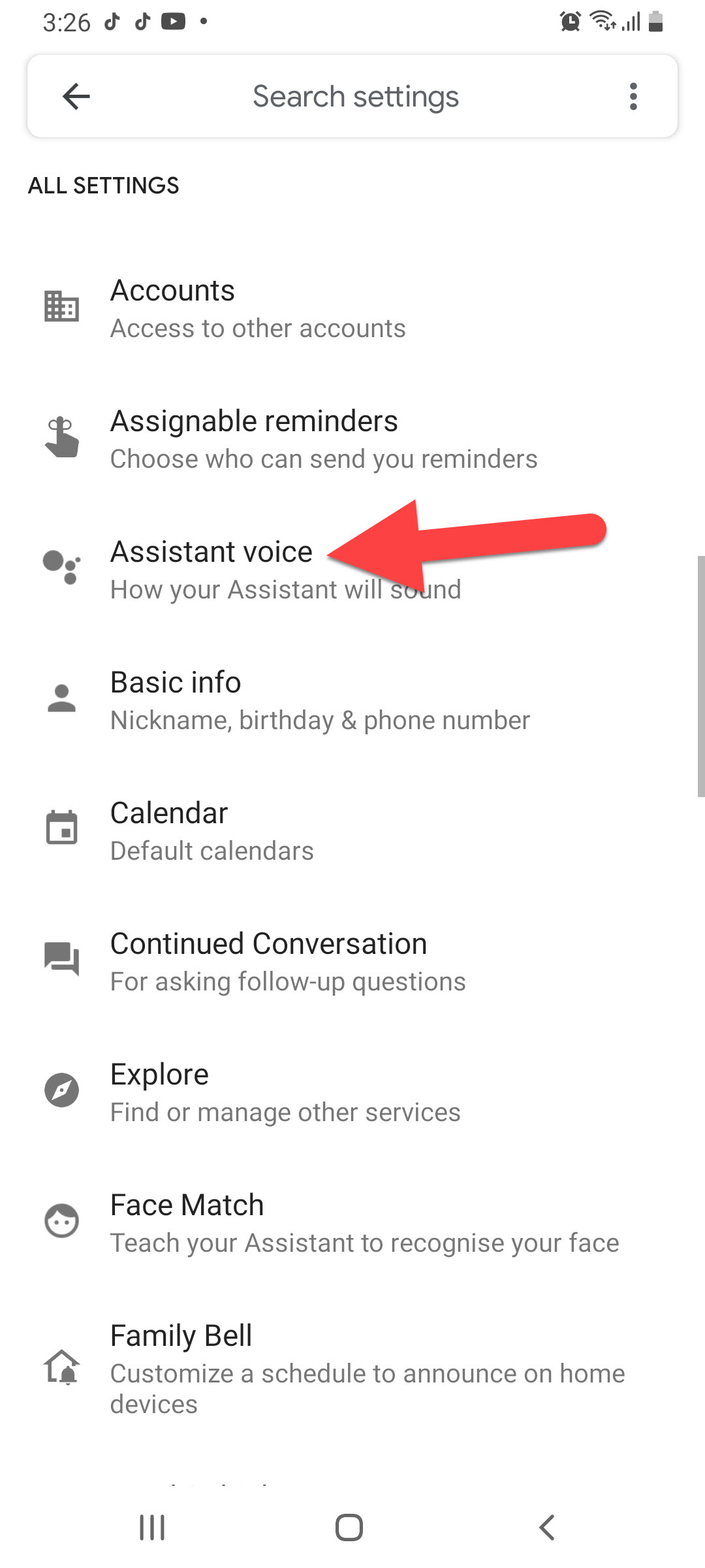 Tap on the Google Assistant Step 4. When the google assistant is open then scroll down after that in the section on all settings click on the Assistant Voice.