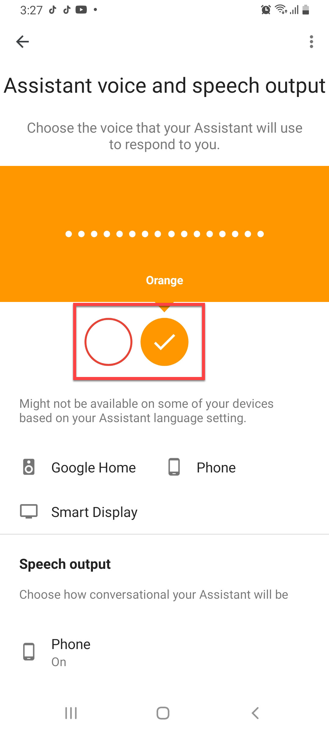 Click on the Assistant Voice Step 5. At last, select the red one or the orange one, the red one is a girl’s voice, or the orange one is a boy’s voice.