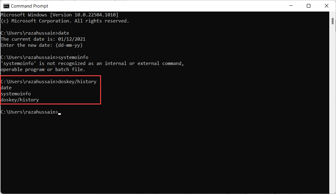 Method 1: Check CMD History Using DOSKEY Command