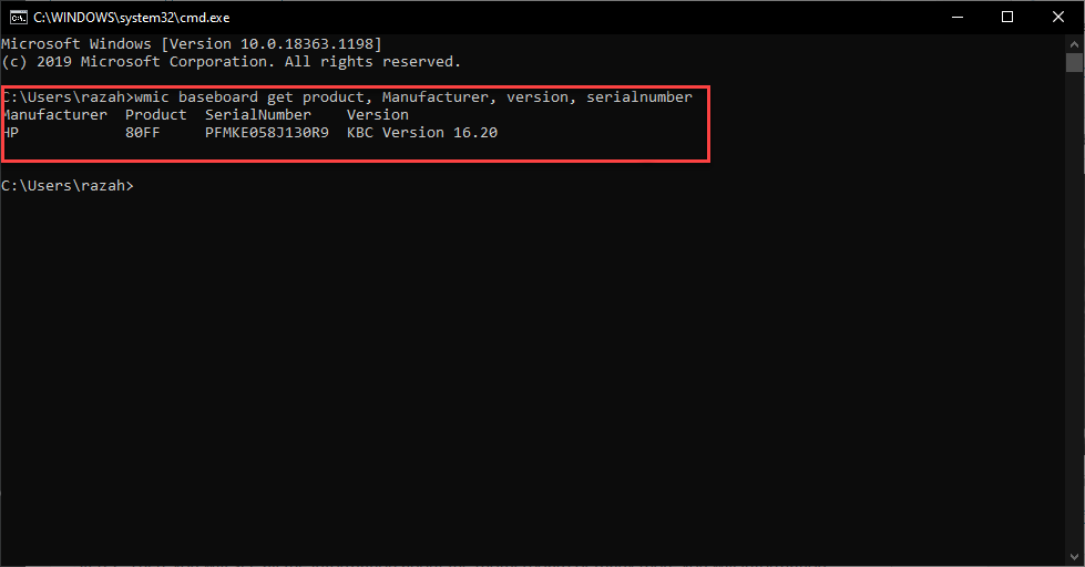 Paste This Code wmic baseboard get product, Manufacturer, version, serialnumber Step 3. After that, you will the all information of version, serialnumber.