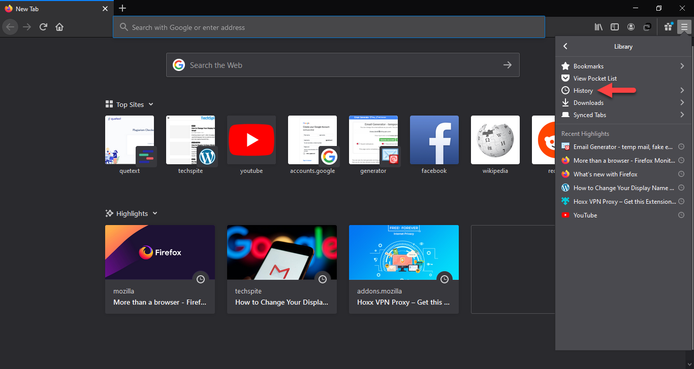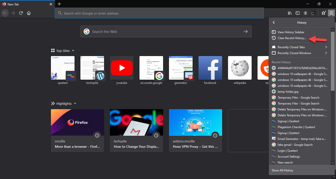 Click on the History Step 3. In the section of history click on the Clear Recent History.