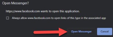 Step 8. When you click on the sign in with Facebook the tap on the Open Messenger Desktop.