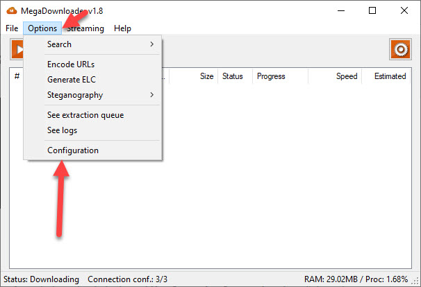 Copy the URL Step 2. Once you copied the URL then open the MegaDownloader V1.8 after that go to the Options then select Configuration.