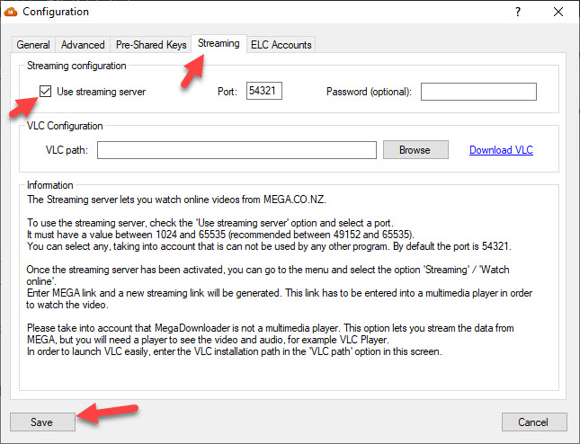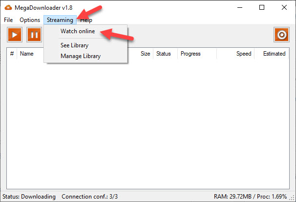 Click on the Save Step 4. Next, in the window of MegaDownloader V1.8 click on the Streaming tab then tap on the Watch Online.