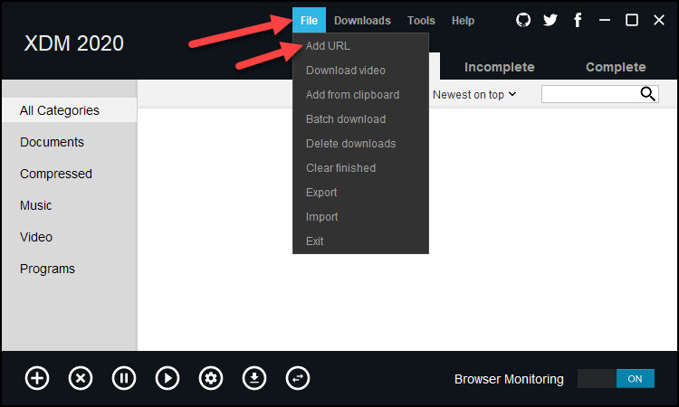 Step 6. In this step, open Xtreme Download Manager then select File from the tabs after that click on the Add URL.