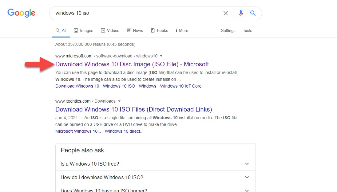 Step 1. At first, you need to go to chrome then go to the search bar after that type Windows 10 iSO. Now, click on the first result then you are on the official website of Microsoft.