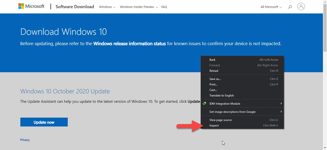 Click on the First Result Then You are on the Official Website of Microsoft Step 2. Once the official website of Microsoft is open then you need to Right-Click then click on the Inspect.