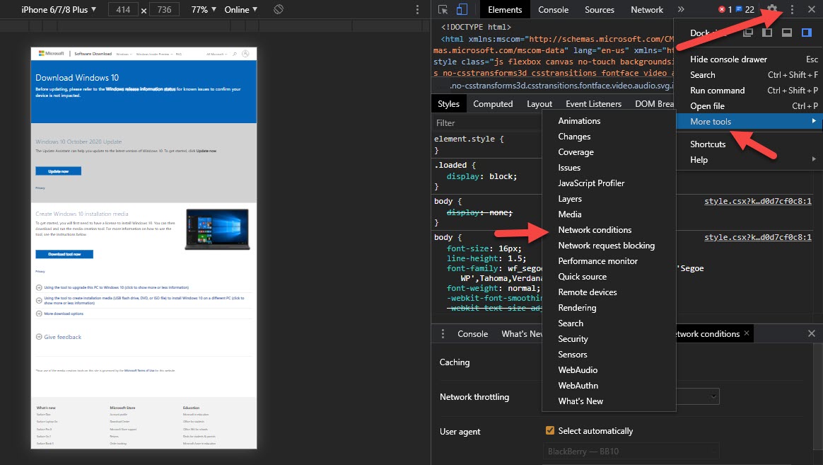 Click on the Developer Tools Step 2. So, when the developer tools are open then click on the Three Dots at the top right corner then click on the More Tools after that Tap on the Network Condition.
