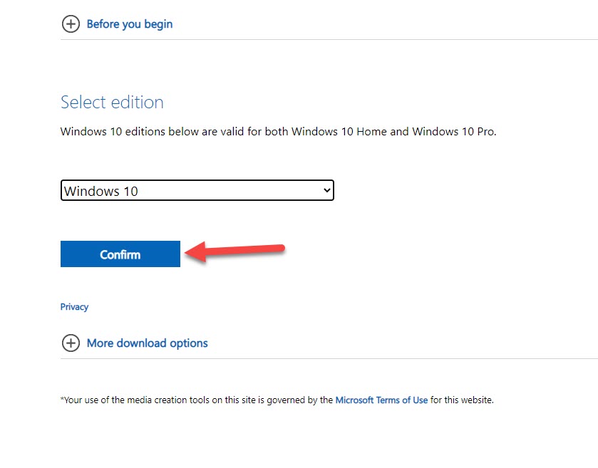 Click on Refresh Step 6. Once the page is refresh is done then scroll down after that click on the Arrow then select Windows 10. Click on the Confirm.