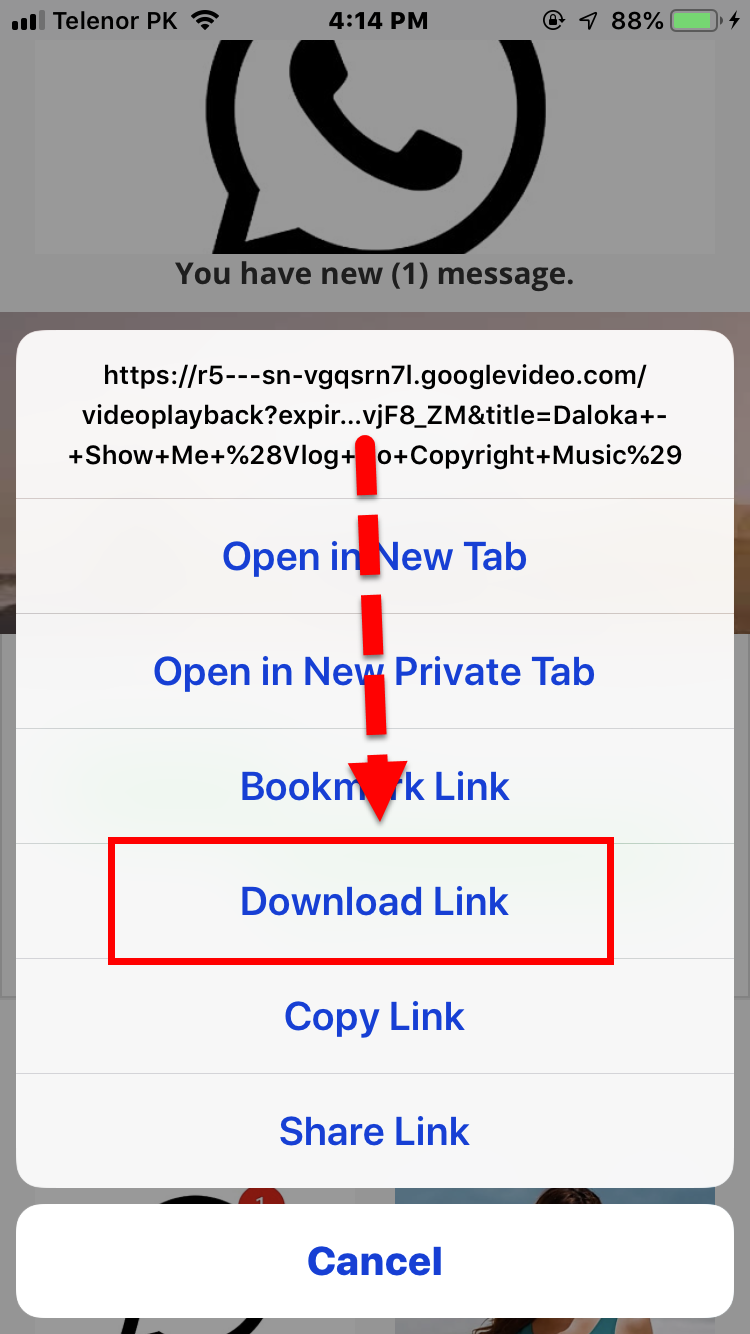Long tab Step 6. Then, a new screen pop up so, you need to tap on the download link.