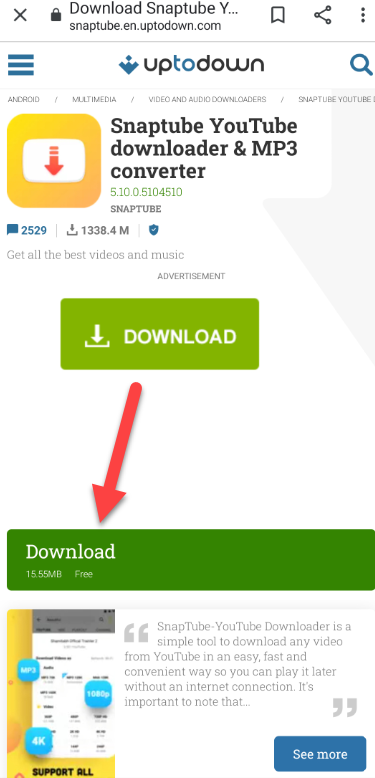 Step 2. When your Uptodown is open go to the search bar the type SnapTube.