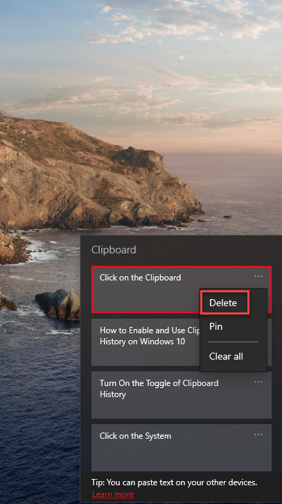 Click on the Clipboard Step 3. Tap on the Three Dots of the clipborad then click on the Delete to delete the clipboard.