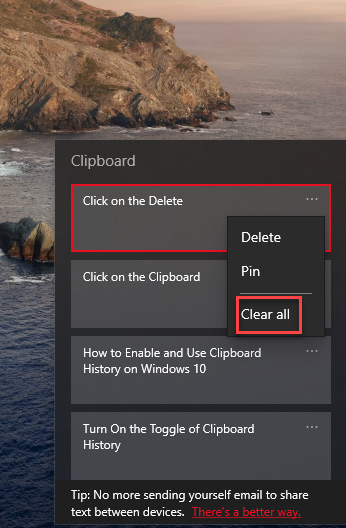 Click on the Delete Step 4. However, tap on the Three Dots click on the Clear All to delete all the clipboard.