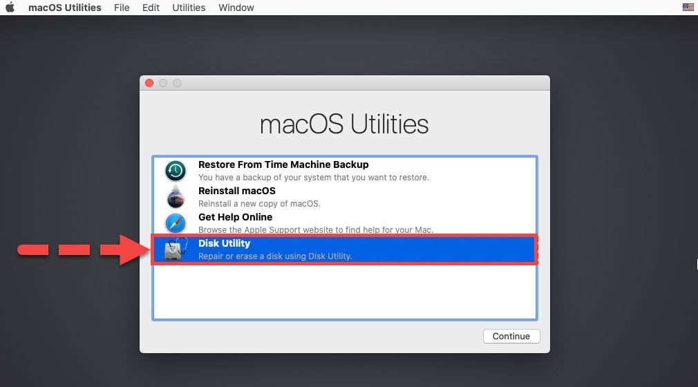 Disk Utilities In the macOS Utilities, there you will see four options such as Restore From Time Machine Backup, Reinstall macOS, Get Help Online, and Disk Utilities. Therefore, you have to select the Disk Utilities because we will use it from erasing and moving the partition’s data.