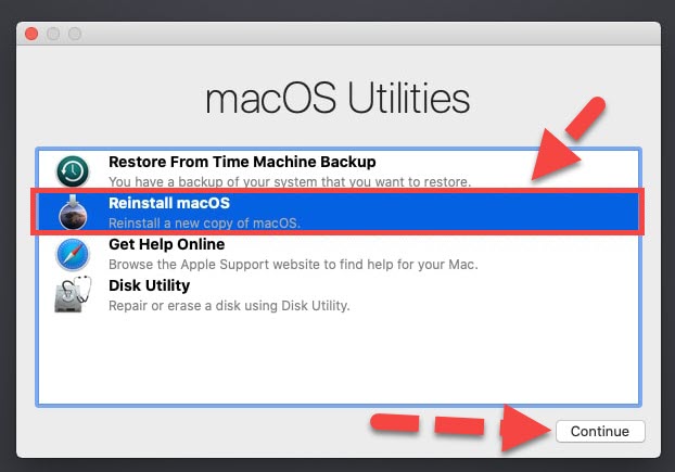 When you erase the hard drive on your Mac. Now it is time to close or exit the disk utilities and open the macOS utilities screen again. Then, you have to select the second option which is Reinstall macOS. After that, select the drive which you have formatted to install the operating system. The installation will completely make a new macOS like factory reset. You need to reactivate then all accounts by signing with your iCloud.