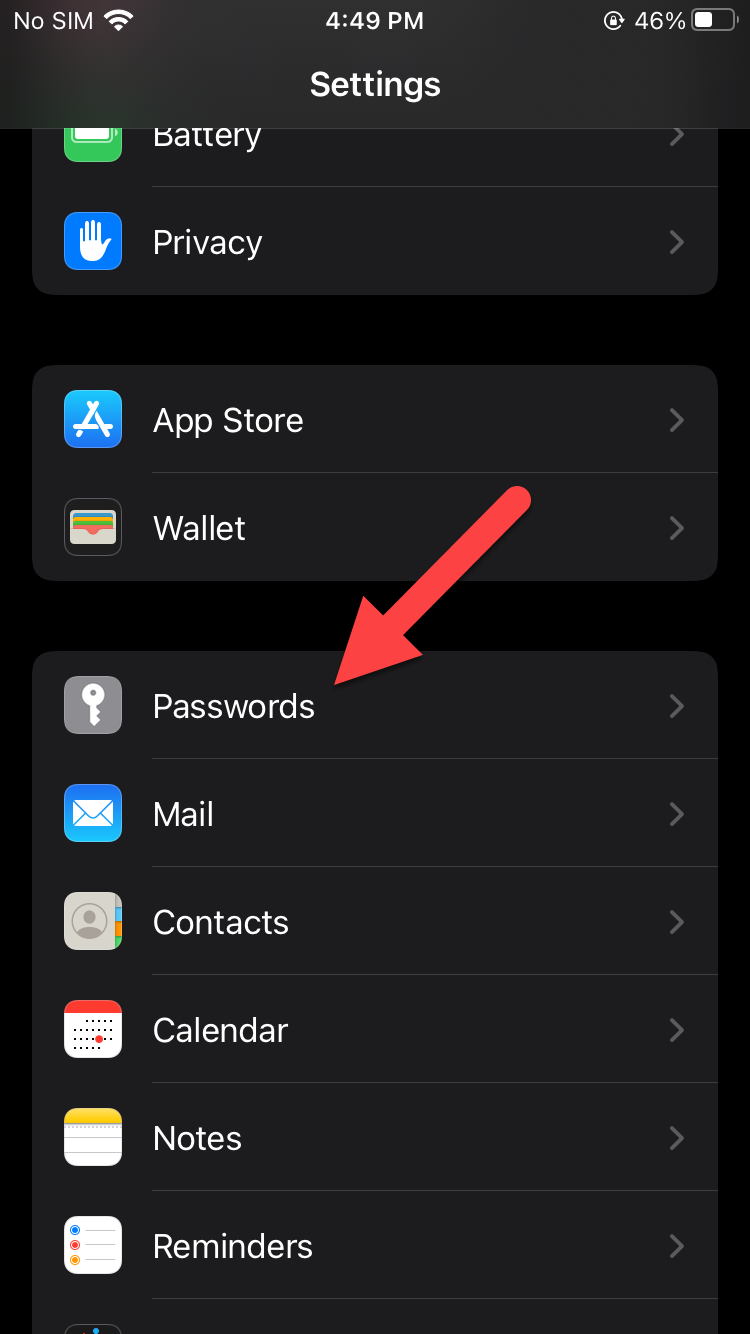 Step 1. Go to Settings > Passwords > Website & App Passwords.