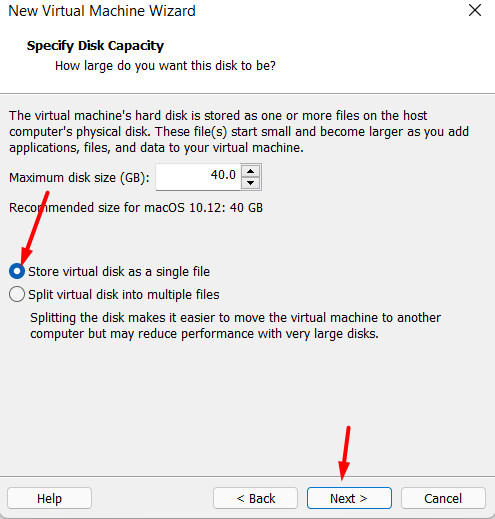 Step 6. Don’t Specify the disk space and select Store virtual disk as a single file and click on the Next.