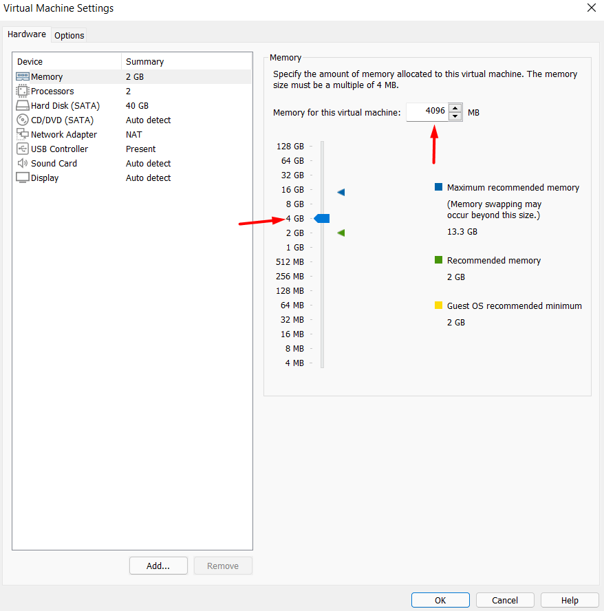 Step 9. Increase the Memory from 2 GB to 4 or higher GB of RAM for better performance.