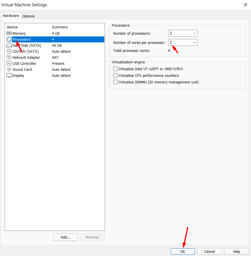 Step 10. Go to processor tab core from 2 cores to 4 or Higher cores and click on the OK.
