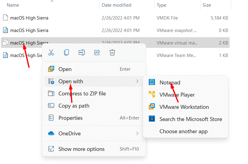 Step 11. Now, Right-click macOS High Sierra and click on the Open with and click on the Notepad.