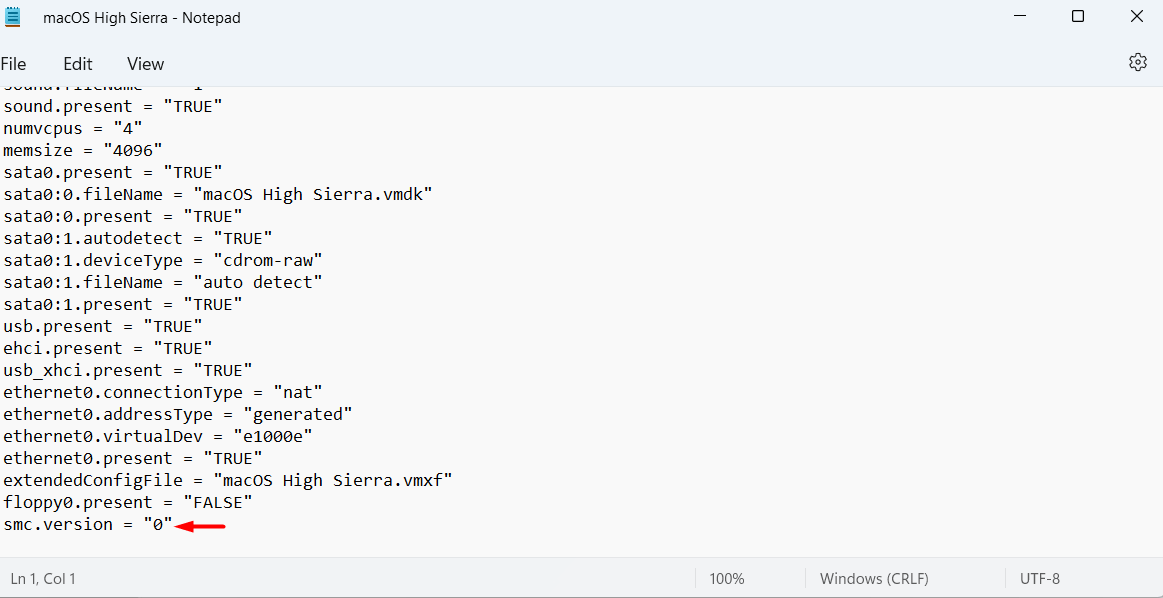 Step 12. Scroll down and type (SMC.version = “0”) and press Ctrl+S and click on the save.