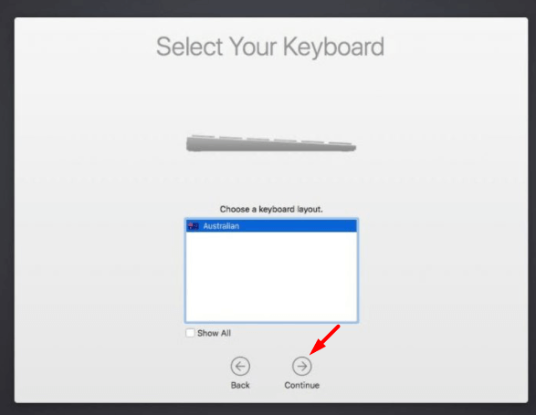 Step 3. click Show All and choose the keyboard you’re using Click on the Continue.