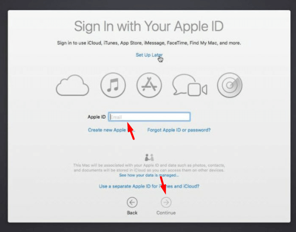 Step 5. If you’re an Apple ID, sign in or you can set up later and click on the Continue.
