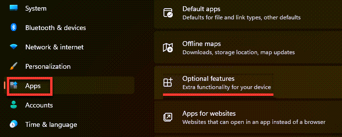 Step 2. When the settings are launch then from your left side go to the Apps after that from the options click on the Optional Features.