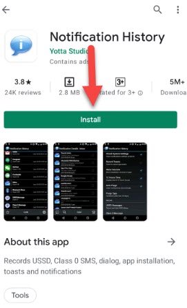 Step 1. Open your Google Play Store then go to the search bar after that type Notification History.