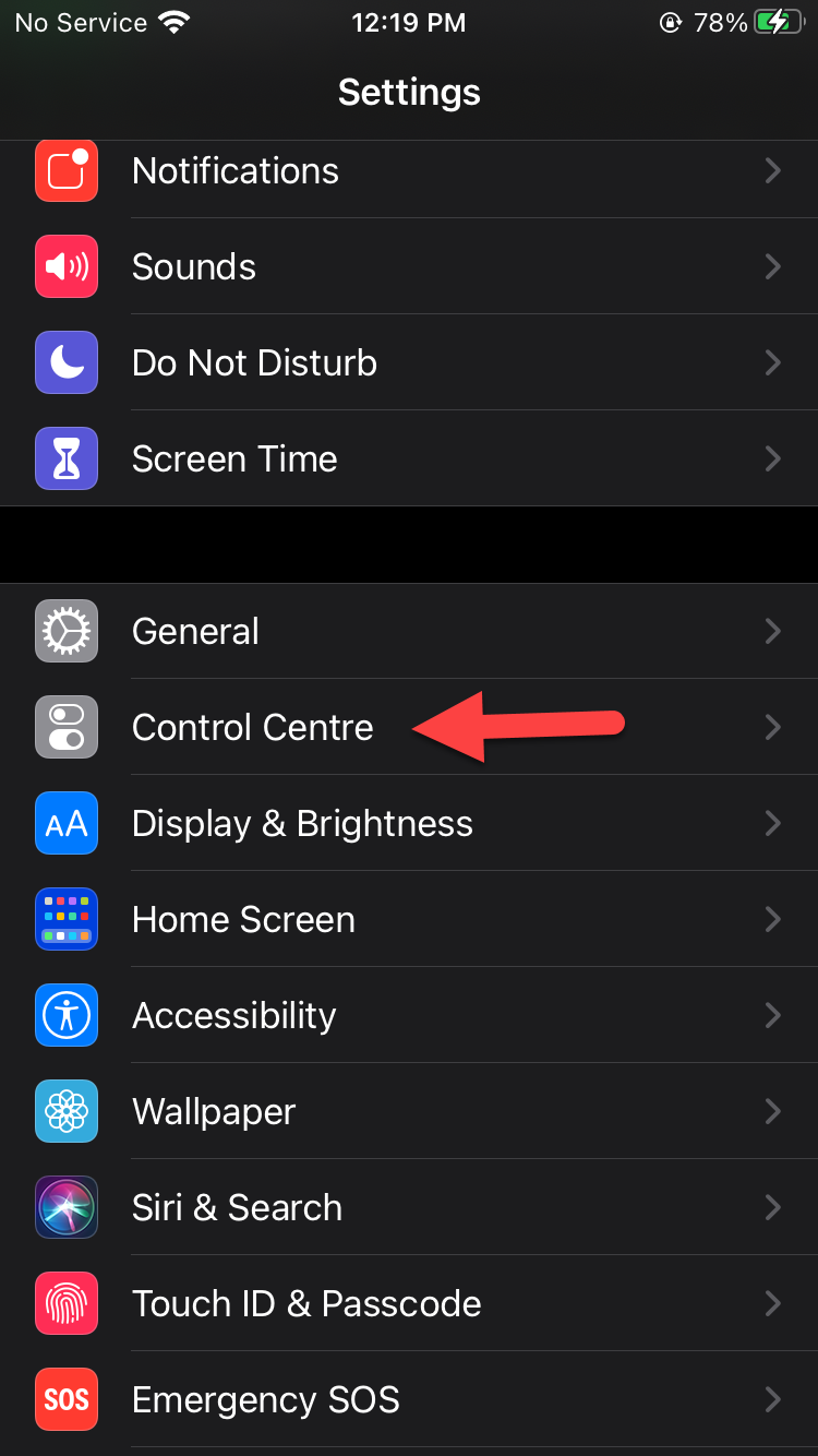 Step 1 First of all, open the Settings on your device after that scroll down then click on the Control Centre.