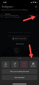 Step 3. Click on the Three Dots at the right corner of the post after that tap on the QR Code.