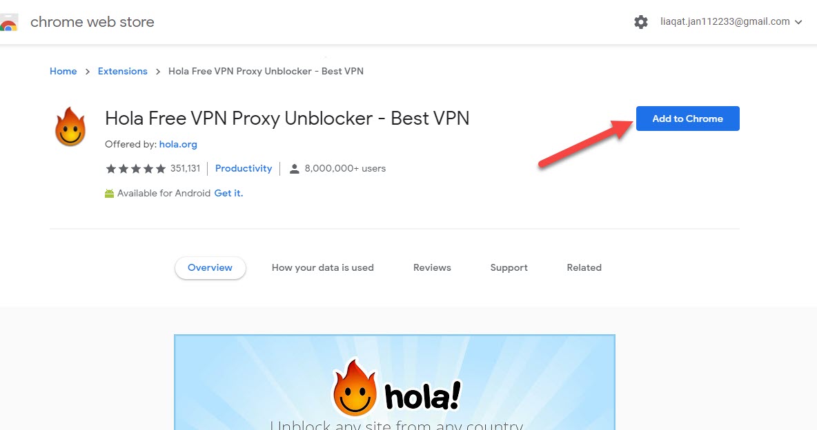Type Hola Then Press Enter Step 5. Now, when you find hola then click on the Add to Chrome.