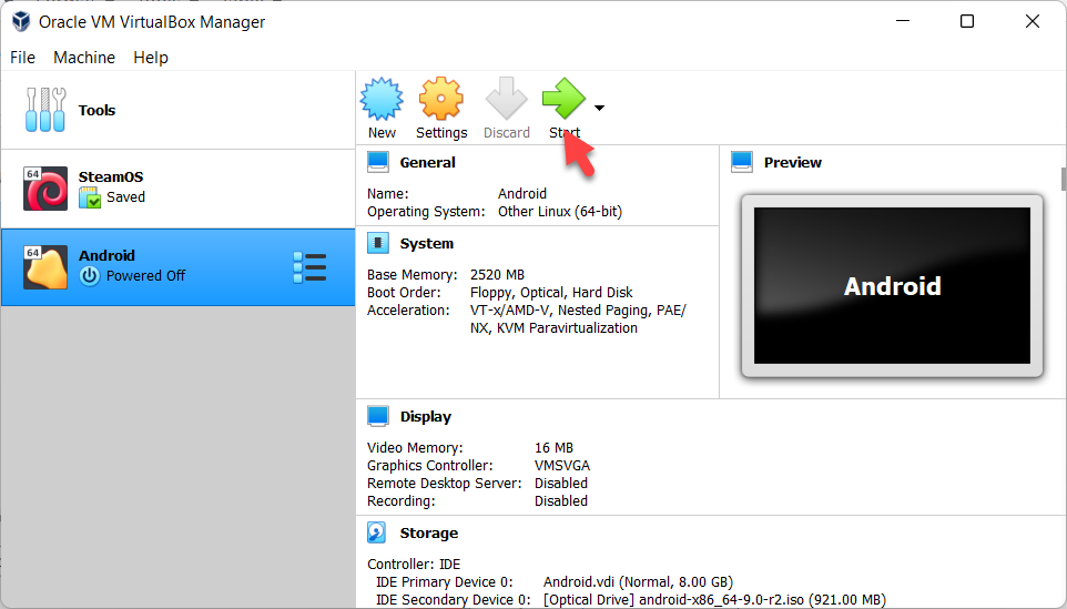 Click On The OK Step 8. Now, Andriod is downloaded in Virtualbox on windows 11.