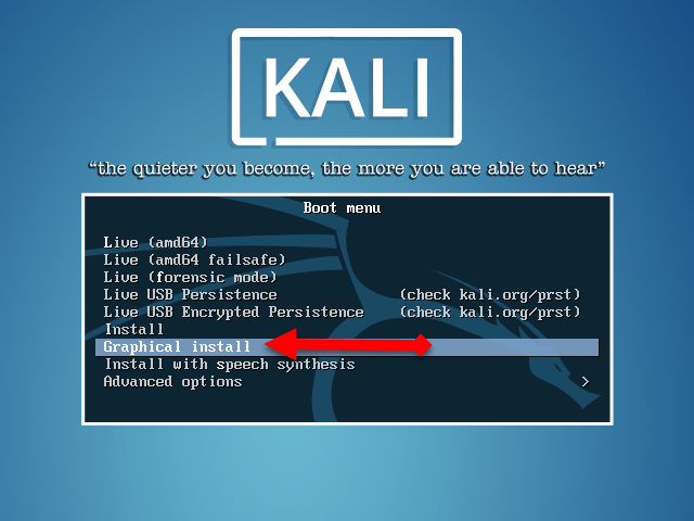 Graphical install Step 3: After that, select the language for your Kali Linux.
