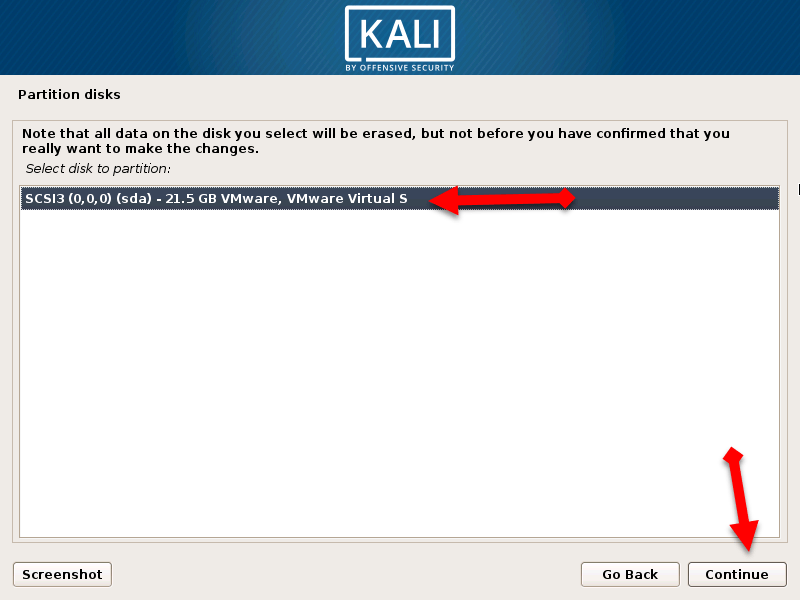 Choose the partition disk Step 11: A new windows will be opened you should select the SCS13 (0,0,0) (sda) 21.5GB VMware virtual S.