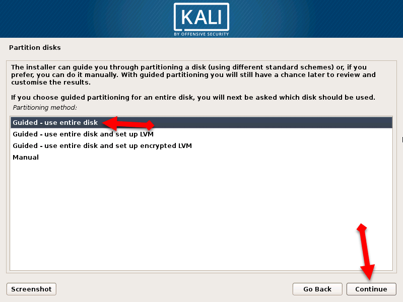 Step 10: Then, choose the partition disk, select the Guide – use entire disk.