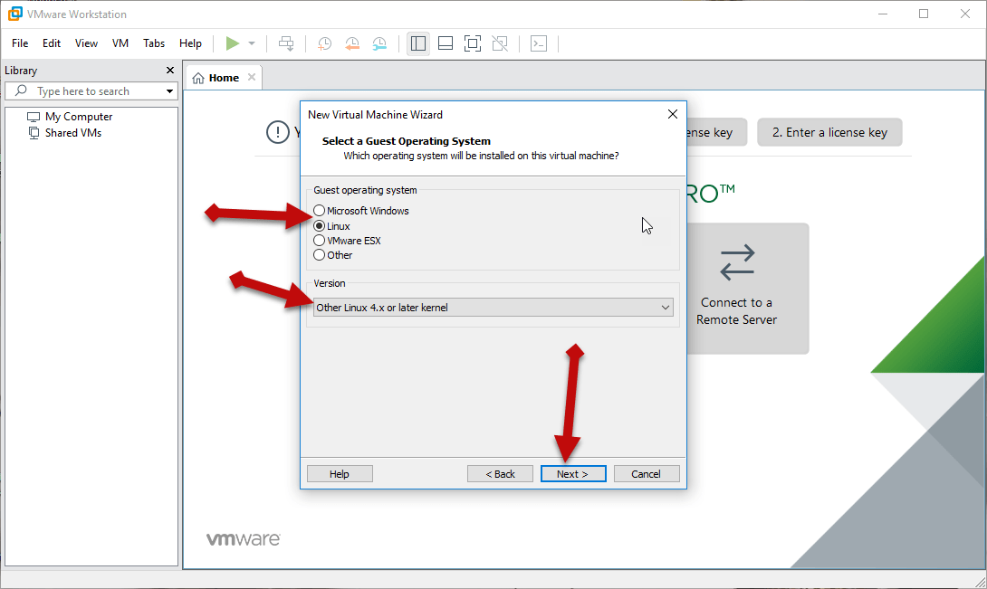I will install the operating system later Step 5: Select the guest operating system Linux because we are going to install Linux. And the version should be Other Linux 4.x or later kernel.
