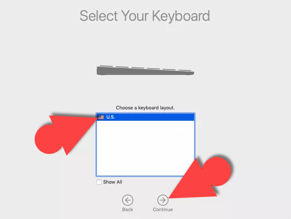 select your country Step 5: Now configure the keyboard you can choose whatever you want then click on continue.