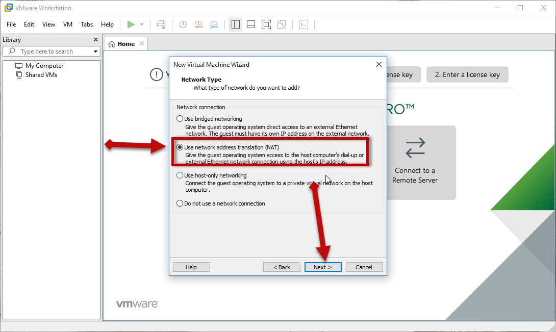 Memory amount Step 9: In this step, you have to choose the network type then you need to choose use network address translation (NAT).