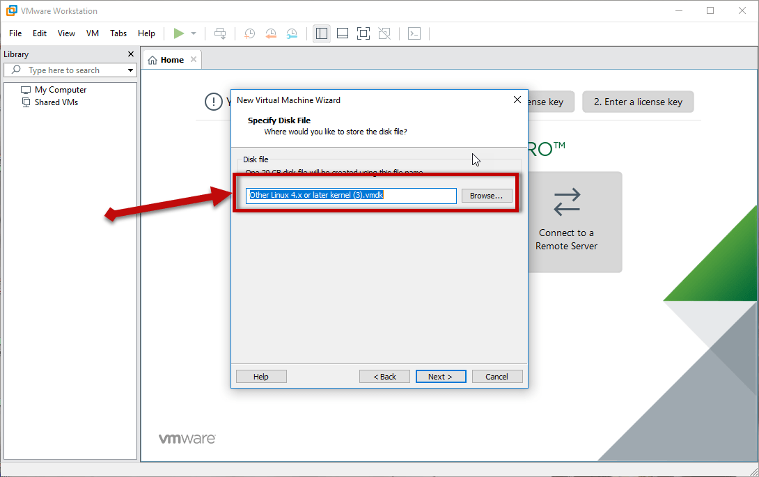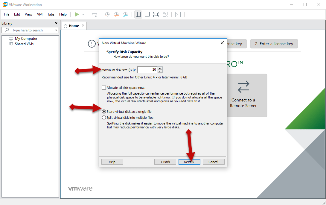 create a new virtual disk Step 13: After that, a new window will be opened to select 20GB amount of disk size then select the store virtual disk as a single file.