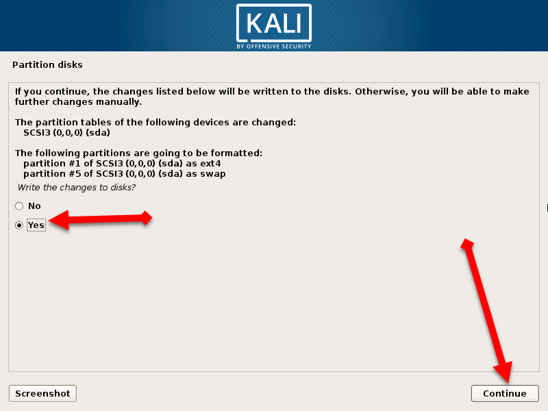 Continue Step 14: Select the yes option because listed below will be written to the disk then click on the continue.