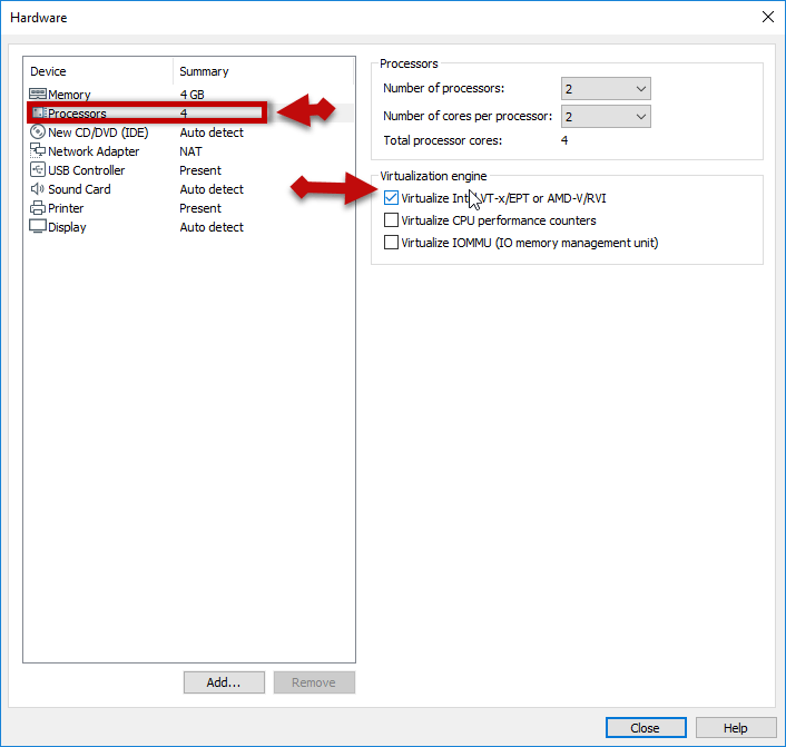 Customize hardware Step 2: Then hardware window will be opened, you need to click on the processor tab then select the Virtual intel VT-x/EPT or AMD-V/RVI.
