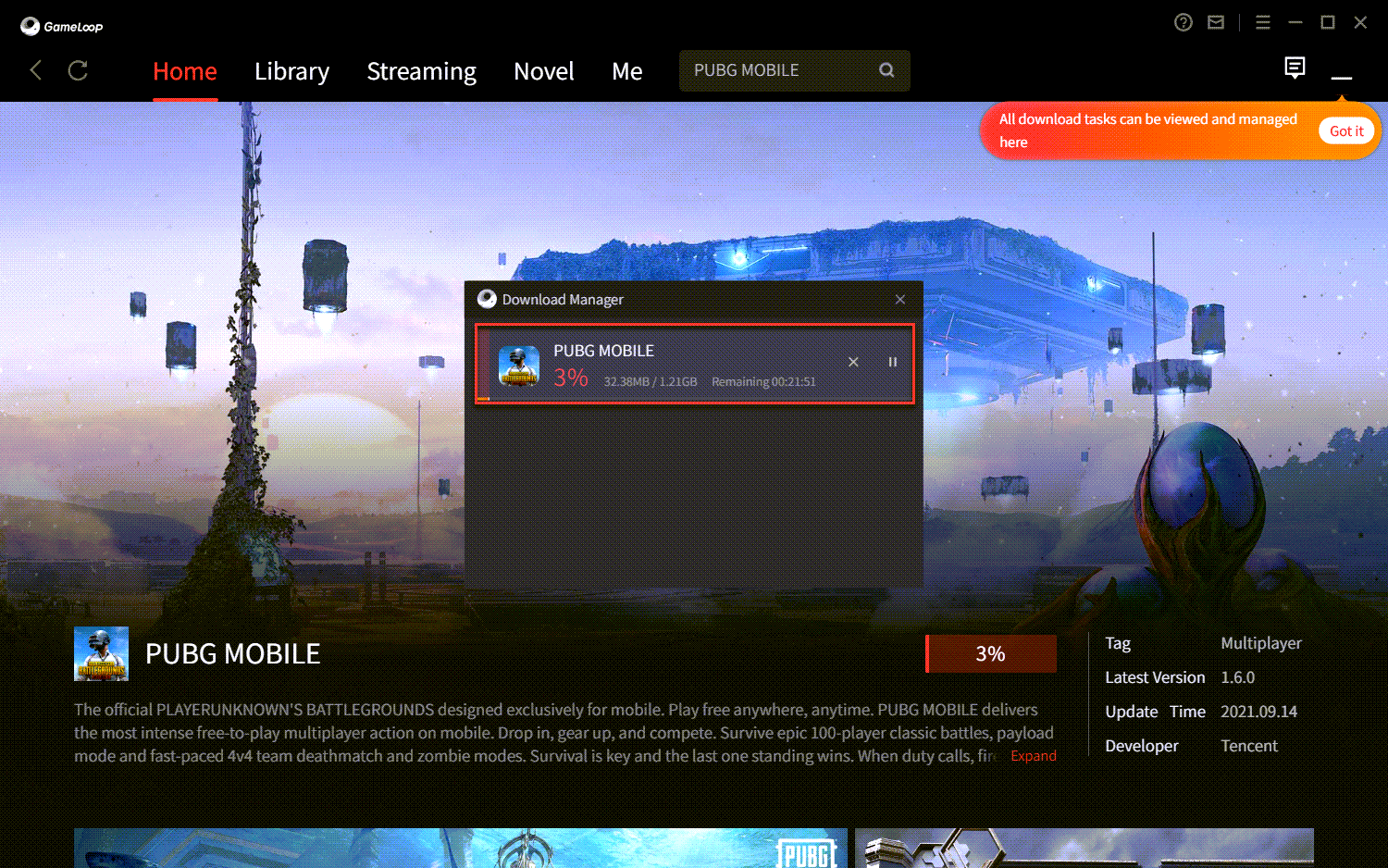 Click on the Install Step 7. The PUBG install will start and the file size is 1.21GB so it may take more time.