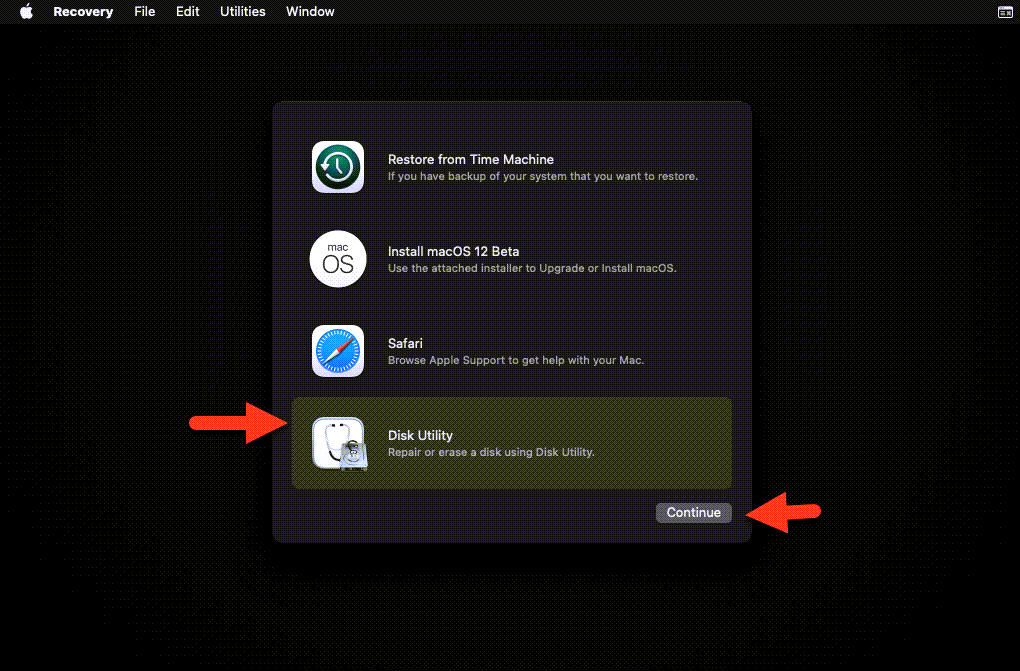 Install macOS Monterey on VMware 9. After that, select Install macOS 12 Beta and click Continue.