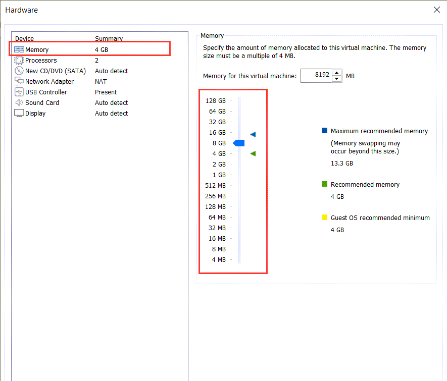 Customize hardware 7. On customize window, go to the Memory tab and increase the size from 4GB up to 8GB for better performance.