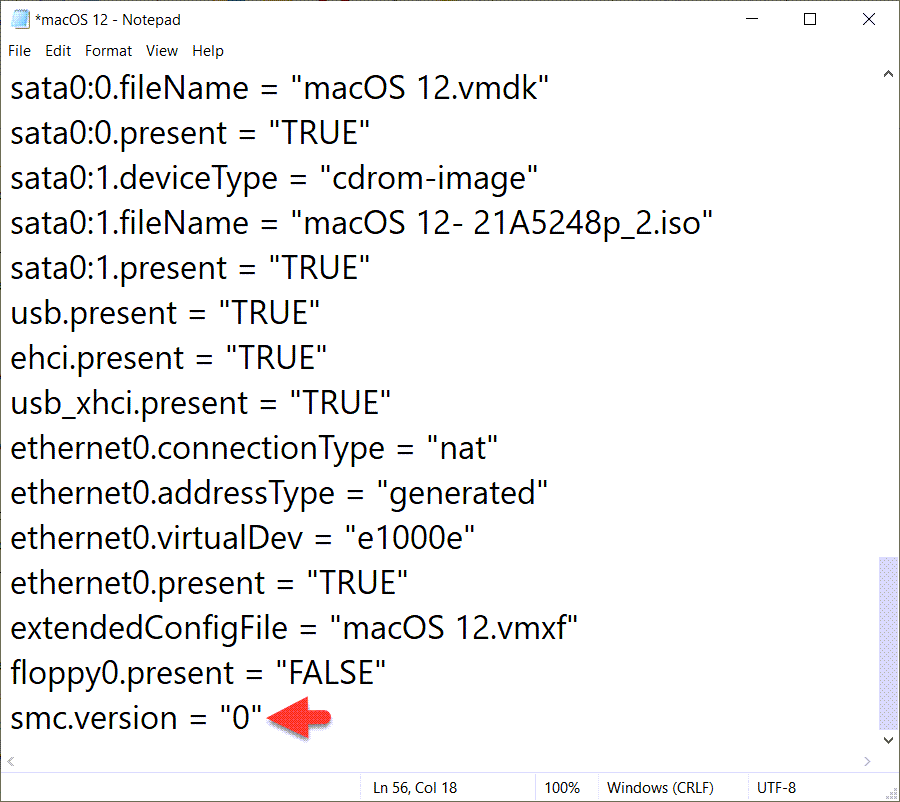 VMX File 2. On Notepad, scroll down to the bottom and copy and paste the following code. Then save the Notepad and close it.