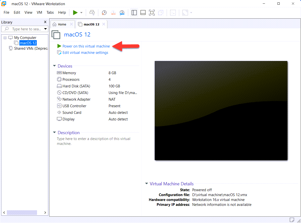 Paste code Step 6: Start macOS Monterey Virtual Machine