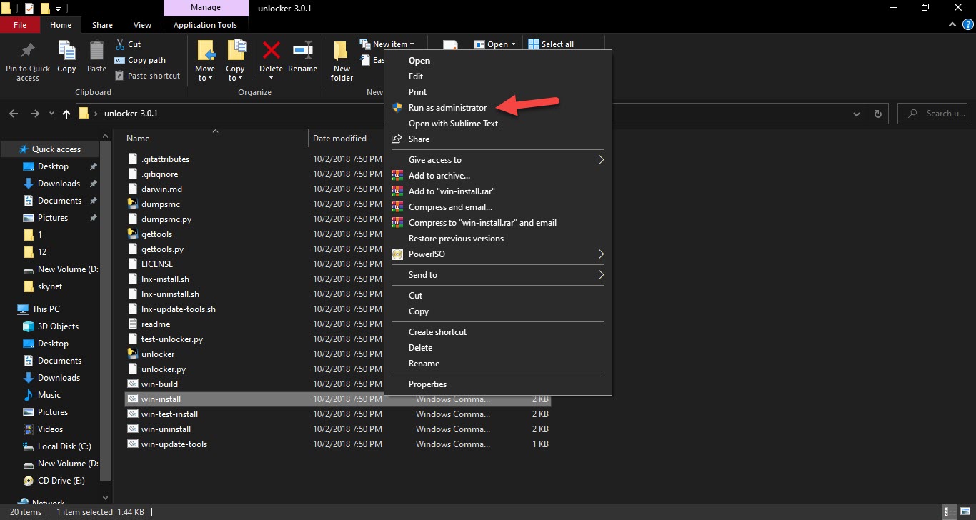 Tap on the Extract Here Step 3. Once you click on the extract here then you will get a folder then open the folder after that Right-Click on the Win-Install then click on the Run As Administrator.